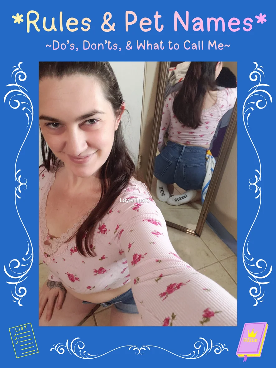 💚 DO 💚 -Use Tip Menu📜 Create your own show or join together to achieve a tip with others to keep things going! 😉 -Be respectful to everyone, including My Champions, My Knights, & The Princess! 💖 - Please refer to my Boundaries when making an off tip menu request 🫶 -Be generous, & receive generosity! 💞 Whether you spoil me with a tip, request a private show, send me a gift, I love to show love right back! 🥰 -Initiate! 🗨️ Confidence is sexy, don't be shy. Come say hello to the Princess waiting for you in her tower 🏰💖 💔 DON'TS 💔 - Do NOT talk about not being able to afford tokens/ tips, out of respect you will be muted 🤐 If you don't have tokens, then just sit back & enjoy 😉 🚫 Instant Ban 🚫 ~Body Shaming, Derogatory insults/ comments/ names, Trolling, Promoting other models/ or own pages, Spam/ Link Posting 🥰 Approved Pet Names 🥰 Layla, Baby, Cutie, Princess, Queen, Goddess, Good Girl, Bad Girl, Babygirl.